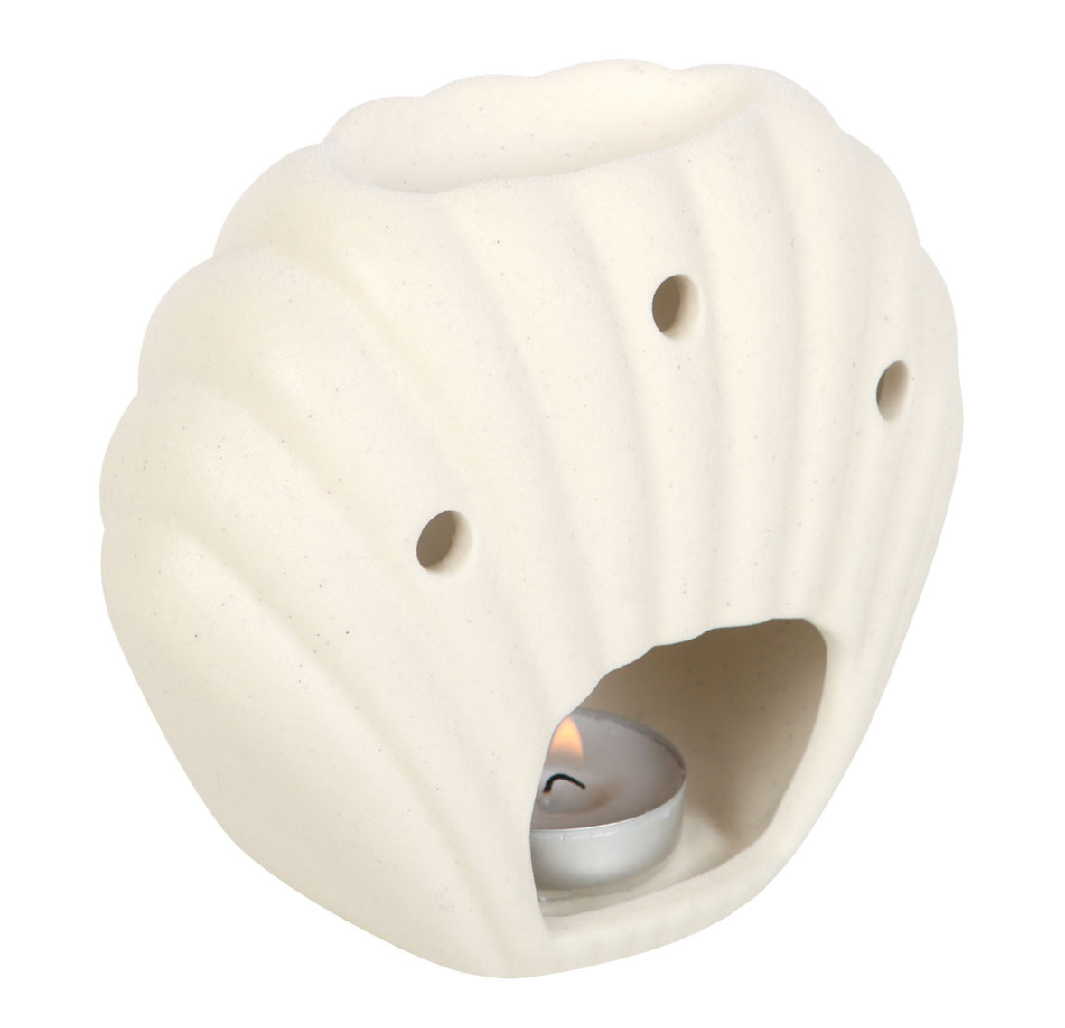Inspiré des courbes naturelles d’un coquillage et façonné dans une céramique mate d’un blanc sable doux, il diffuse la chaleur avec délicatesse, sublimant vos fondants parfumés ou huiles essentielles.